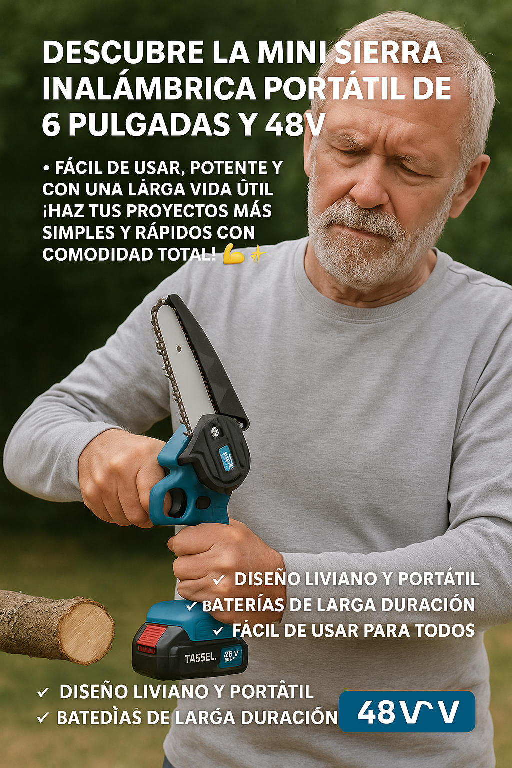 Descubre la Mini Sierra Inalámbrica Portátil de 6 pulgadas y 48V con dos baterías recargables.